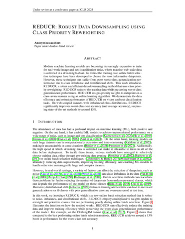 REDUCR: Robust Data Downsampling Using Class Priority Reweighting.