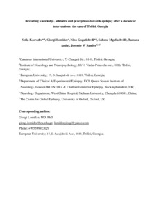 | Title: | Revisiting knowledge, attitudes and perceptions towards epilepsy after a decade of interventions: The case of Tbilisi, Georgia |