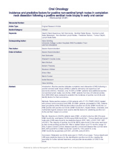 | Title: | Incidence and predictive factors for positive non-sentinel lymph nodes in completion neck dissection following a positive sentinel node biopsy in early oral cancer |