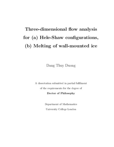 Title: | Three-dimensional flow analysis for (a) Hele-Shaw configurations, (b) melting of wall-mounted ice |