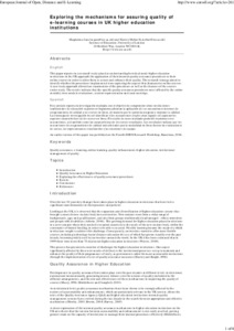 | Title: | Exploring the mechanisms for assuring quality of e-learning courses in UK higher education institutions |