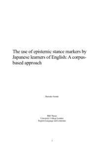 | Title: | The use of epistemic stance markers by Japanese learners of English: A corpus-based approach |