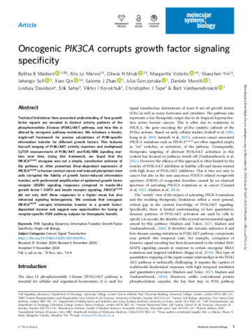 | Title: | Oncogenic PIK3CA corrupts growth factor signaling specificity |