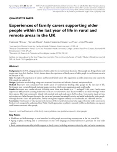 Title: | Experiences of family carers supporting older people within the last year of life in rural and remote areas in the UK |