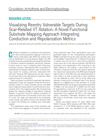 Visualizing Reentry Vulnerable Targets During Scar-Related VT Ablation: A Novel Functional Substrate Mapping Approach Integrating Conduction and Repolarization Metrics.