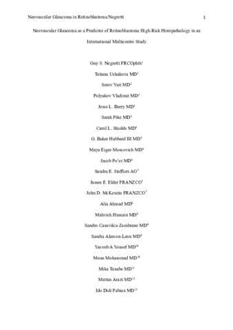 | Title: | Neovascular Glaucoma as a Predictor of Retinoblastoma High-Risk Histopathology in an International Multicentre Study |