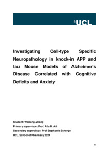 Title: | Investigating Cell-type Specific Neuropathology in knock-in APP and tau Mouse Models of Alzheimer’s Disease Correlated with Cognitive Deficits and Anxiety |