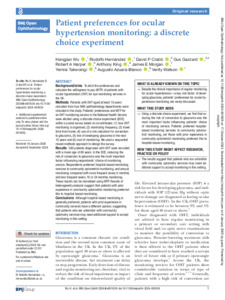 | Title: | Patient preferences for ocular hypertension monitoring: a discrete choice experiment |