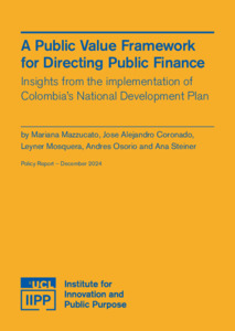 The Government of Colombia’s National Development Plan (NDP) for 2022– 2026 – “Colombia, potencia mundial de la vida” – brings human and planetary wellbeing to the centre of the country’s economic development agenda, but successful implementation will require fundamental changes to how the government operates. To set Colombia on a path of economic development that truly prioritises “life”, a new framework is needed to define, measure and maximise the public value of public resources, which goes beyond maximising revenue and minimising cost. This framework requires a mission-oriented, whole-of-government and cross-sectoral approach that coordinates the actions of a wide array of economic actors (Mazzucato, 2018b & 2021). This report explores the role of key institutions that manage assets and finance on behalf of the Colombian government: the Special Assets Society (SAE), the Bicentennial Group (BC), and Colombia Compra Eficiente (CCE), which manages public procurement. It focuses on how a new public value framework and a mission-oriented approach to coordinating investments across government and across sectors could be applied to these three institutions, to better position the country to realise the NDP’s vision for a more just, equitable and sustainable future.
