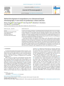 | Title: | Method development of comprehensive two-dimensional liquid chromatography: A new metric for preliminary column selection |