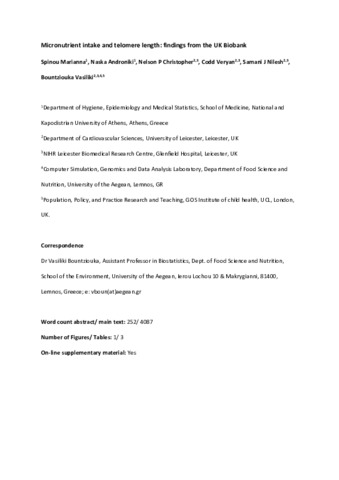 | Title: | Micronutrient intake and telomere length: findings from the UK Biobank |