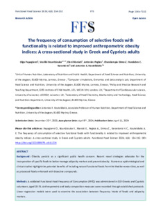 The frequency of consumption of selective foods with functionality is related to improved anthropometric obesity indices: A cross-sectional study in Greek and Cypriots adults.