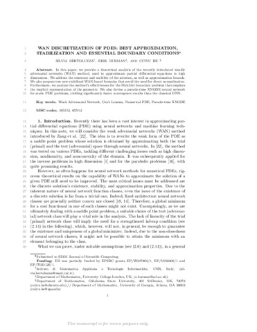 | Title: | WAN Discretization of PDEs: Best Approximation, Stabilization, and Essential Boundary Conditions |