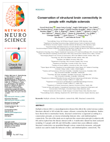 | Title: | Conservation of structural brain connectivity in people with multiple sclerosis |