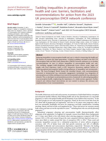 Title: | Tackling inequalities in preconception health and care: barriers, facilitators and recommendations for action from the 2023 UK preconception EMCR network conference |