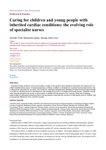 | Title: | Caring for children and young people with inherited cardiac conditions: the evolving role of specialist nurses |