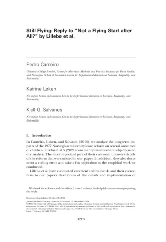 Title: | Still Flying: Reply to "Not a Flying Start after All?" by Lillebø et al. |