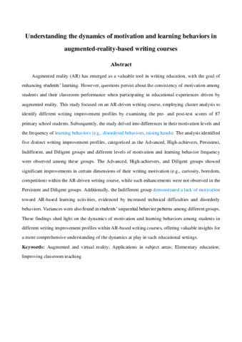 | Title: | Understanding the dynamics of motivation and learning behaviors in augmented reality-based writing courses |