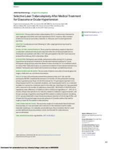 Selective Laser Trabeculoplasty After Medical Treatment for Glaucoma or Ocular Hypertension.
