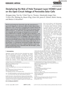 Adv Materials Inter - 2022 - Jiang - Deciphering the Role of Hole Transport Layer HOMO Level on the Open Circuit Voltage of.pdf - Published Version Download (1MB) | Preview |