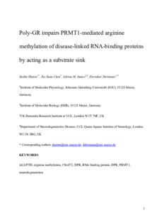 Title: | Poly-GR Impairs PRMT1-Mediated Arginine Methylation of Disease-Linked RNA-Binding Proteins by Acting as a Substrate Sink |