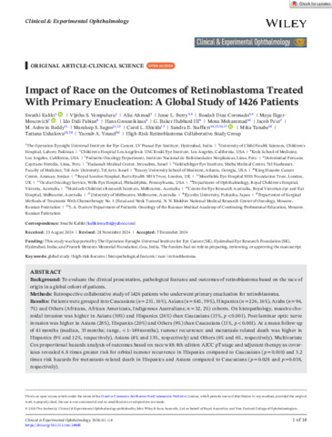| Title: | Impact of Race on the Outcomes of Retinoblastoma Treated With Primary Enucleation: A Global Study of 1426 Patients |