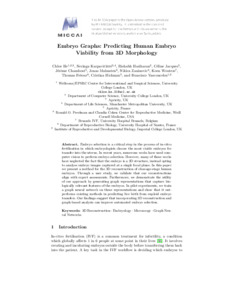 | Title: | Embryo Graphs: Predicting Human Embryo Viability from 3D Morphology |