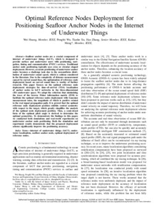 | Title: | Optimal Reference Nodes Deployment for Positioning Seafloor Anchor Nodes in the Internet of Underwater Things |