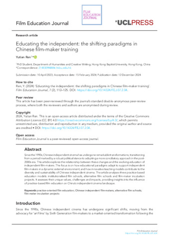| Title: | Educating the independent: the shifting paradigms in Chinese film-maker training |