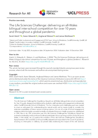| Title: | The Life Sciences Challenge: delivering an all-Wales bilingual inter-school competition for over 10 years and throughout a global pandemic |