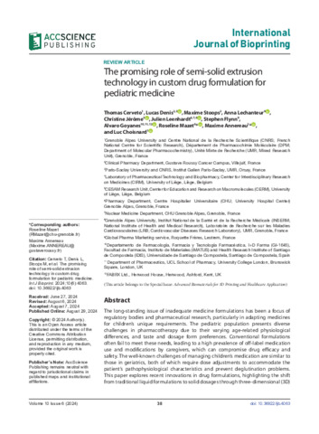 Title: | The promising role of semi-solid extrusion technology in custom drug formulation for pediatric medicine |