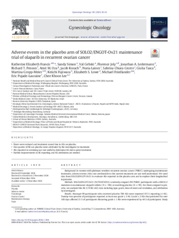 | Title: | Adverse events in the placebo arm of SOLO2/ENGOT-Ov21 maintenance trial of olaparib in recurrent ovarian cancer |