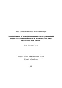 | Title: | The normalisation of Islamophobia in Czechia through mainstream political discourse and its effects on post-2015 Czech public opinion regarding ‘Muslims’ |