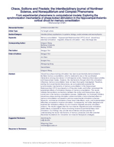 | Keywords: | Memory consolidation; hippocampal-thalamocortical (HTC); circuit closed-loop electrical stimulation; magnetic ultrasonic stimulation; mass discharge rate |