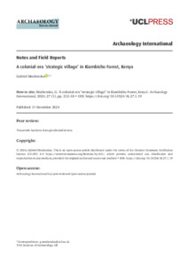 Title: | A colonial-era ‘strategic village’ in Kiambicho Forest, Kenya |