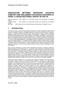 H KURUKOSE CAL F ALETTA J KANG ASSOCIATION BETWEEN PERCEIVED ACOUSTIC COMFORT AND WEBEING FOR SCHOOL TEACHERS AT WORK A CROSS-SECTIONAL SURVEY IN THE UK.pdf - Published Version Download (205kB) | Preview |