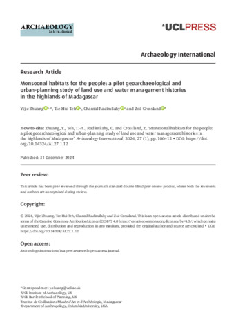 Title: | Monsoonal habitats for the people: a pilot geoarchaeological and urban-planning study of land use and water management histories in the highlands of Madagascar |