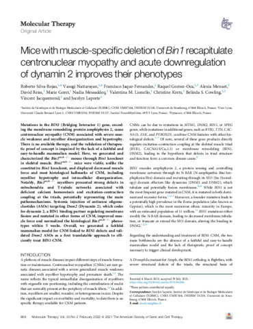 Title: | Mice with muscle-specific deletion of Bin1 recapitulate centronuclear myopathy and acute downregulation of dynamin 2 improves their phenotypes |
