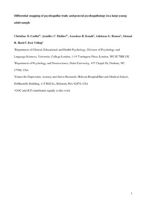 | Title: | Differential Mapping of Psychopathic Traits and General Psychopathology in a Large Young Adult Sample |