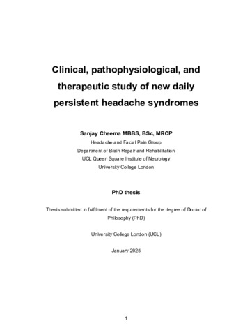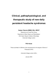 | Title: | Clinical, pathophysiological, and therapeutic study of new daily persistent headache syndromes |