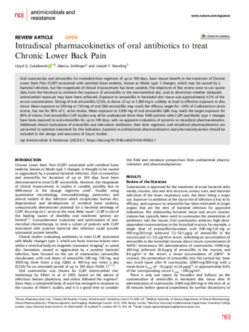 Title: | Intradiscal pharmacokinetics of oral antibiotics to treat Chronic Lower Back Pain |
