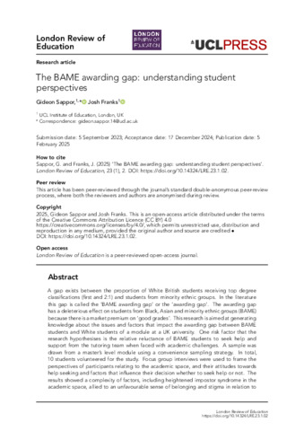 Keywords: | BAME awarding gap, awarding gap, BAME, help-seeking, equity, inclusion |