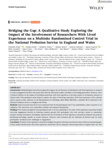 Title: | Bridging the Gap: A Qualitative Study Exploring the Impact of the Involvement of Researchers With Lived Experience on a Multisite Randomised Control Trial in the National Probation Service in England and Wales |