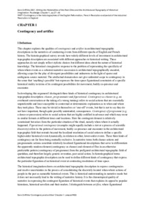 This chapter explores the qualities of contingency and artifice in architectural topographic descriptions in the narratives of contrasting events from different epochs of English and French history. The historiographical survey reveals how widely different levels of investment in architectural topographic description are associated with different approaches to historical writing. These approaches do not simply reflect stylistic choices but different ideas about the nature of historical knowledge. The historian’s imaginative response to the problem of representing the specificity of when-where events as a coherent narrative succession is architectural topographically encoded, allowing scope for the play of divergent possibilities and unknowns in the light of sparse and ambiguous source material. The artefactual domain does not give unlimited scope to contingency in the sense that ‘anything’s possible’ but expresses the time-space figurational constraints of a specific historical reality in terms of its contingent possibilities for movement, bodily co-presence and encounter.