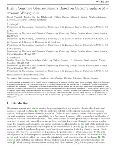 Title: | Highly Sensitive Glucose Sensors Based on Gated Graphene Microwave Waveguides |