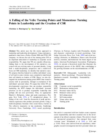 | Title: | A Falling of the Veils: Turning Points and Momentous Turning Points in Leadership and the Creation of CSR |