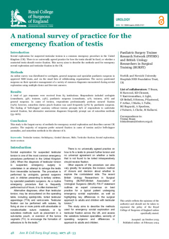 | Title: | A national survey of practice for the emergency fixation of testis |