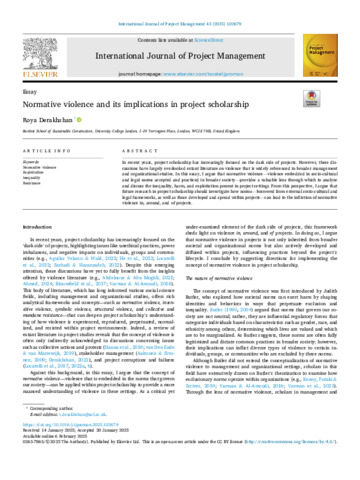 In recent years, project scholarship has increasingly focused on the dark side of projects. However, these discussions have largely overlooked extant literature on violence that is widely referenced in broader management and organizational studies. In this essay, I argue that normative violence—violence embedded in socio-cultural and legal norms accepted and practiced in broader society—provides a valuable lens through which to analyze and discuss the inequality, harm, and exploitation present in project settings. From this perspective, I argue that future research in project scholarship should investigate how norms—borrowed from external socio-cultural and legal frameworks, as well as those developed and spread within projects—can lead to the infliction of normative violence in, around, and of projects.