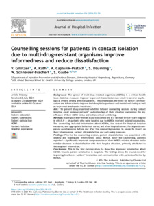 Title: | Counselling sessions for patients in contact isolation due to multi-drug-resistant organisms improve informedness and reduce dissatisfaction |