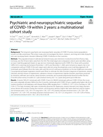 Title: | Psychiatric and neuropsychiatric sequelae of COVID-19 within two years: A multinational cohort study |